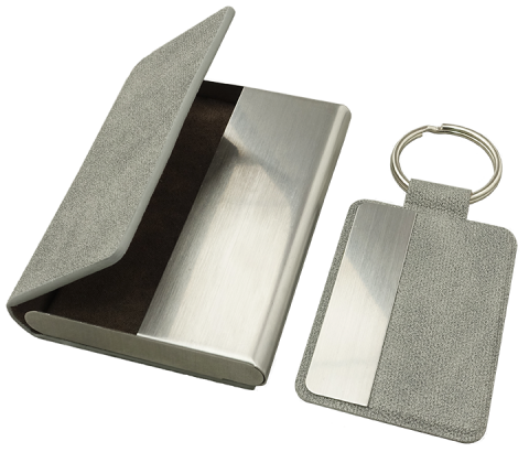 Elegáns fém és bőr résszel kialakított névjegykártya és kulcstartó, utóbbit bőrönd megjelölésére is használhatsz. Egyaránt ajánljuk nőknek és férfiaknak, megjelenése nem túl díszített, mégis megakad rajta az ember szeme. A fém rész gravírozásra alkalmas.